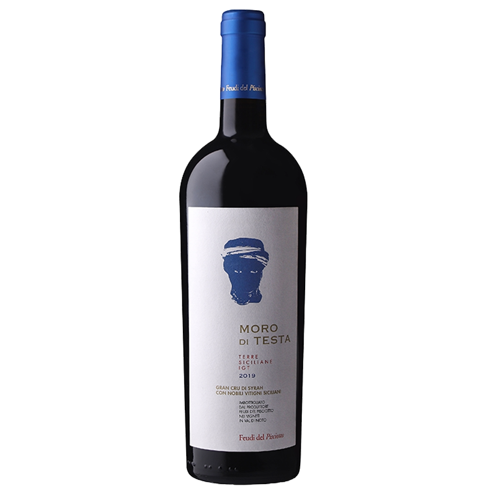 La Syrah coltivata nei vigneti di Piano Spineto, l’altopiano più alto dell’azienda, trova in questi terreni sabbiosi il suo habitat ideale. L'etichetta del Moro di Testa raffigura un'immagine tratta da una scultura del rinomato ceramista di Caltagirone, Giacomo Alessi, sottolineando il legame tra tradizione e territorio che caratterizza questo vino.